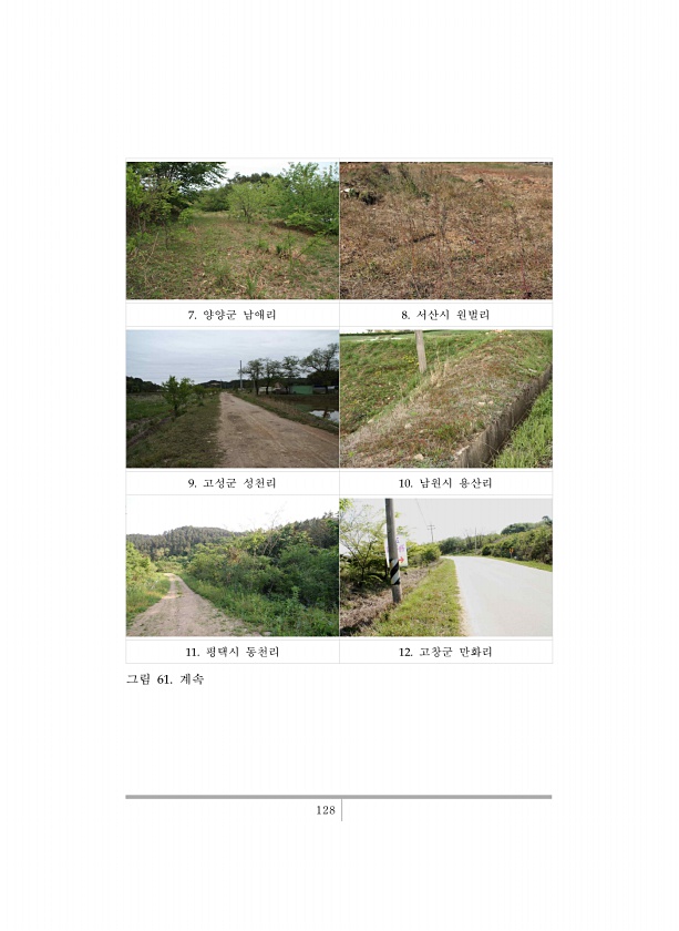 128 7. 양양군 남애리 8. 서산시 원벌리 9. 고성군 성천리 10. 남원시 용산리 11. 평택시 동천리 12. 고창군 만화리 그림 61.계속