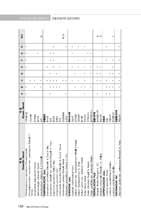 144 ? National Institute of Ecology 학 명 Scientific Name 국 명 Korean Name A B C D E F G H 비고 Phtheirospermum japonicum Thunb. Kanitz 나도송이풀 * * * * * * Pseudolysimachion rotundum var. subintegrum Nakai T. Yamaz. 산꼬리풀 * Scrophularia kakudensis Franch. 큰개현삼 * * Siphonostegia chinensis Benth. 절국대 * Veronicastrum sibiricum L. Pennell 냉초 * * Ⅱ CAMPANULACEAE Juss. 초롱꽃과 Adenophora remotiflora Siebold & Zucc...