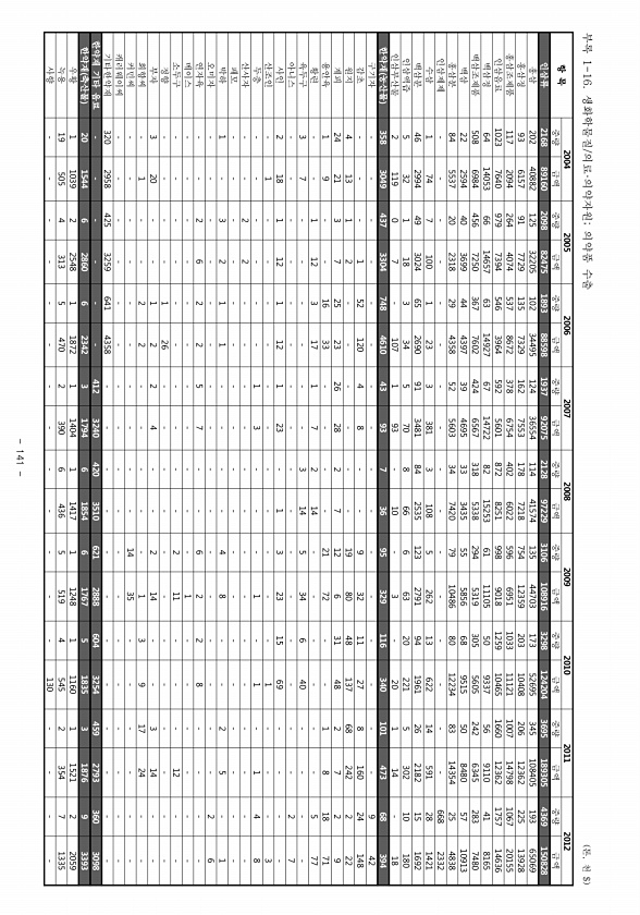 141 항 목 2004 2005 2006 2007 2008 2009 2010 2011 2012 중량 금액 중량 금액 중량 금액 중량 금액 중량 금액 중량 금액 중량 금액 중량 금액 중량 금액 인삼류 2168 89160 2098 82475 1893 88598 1937 92075 2128 97229 3106 108916 3298 124204 3695 189305 4369 150828 홍삼 202 40882 125 32205 102 34495 124 36554 114 41574 135 44703 173 52695 345 108405 193 65069 홍삼정 93 6157 91 7729 135 7329 162 7553 178 7218 754 12359 203 10408 206 12362 225 13928 홍삼조제품...