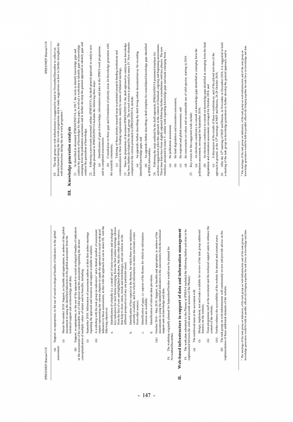 IPBES/MEP-Bureau/11/8 a Support, as appropriate, to the use of social-ecological bundles of indicators in the global assessmenti March-November 2018Support, as feasible and appropriate, to authors of the global assessment in using the identified indicators in the global assessment from the technical support unit on knowledge and data; b Support, as appropriate, to the use of the approach to social...