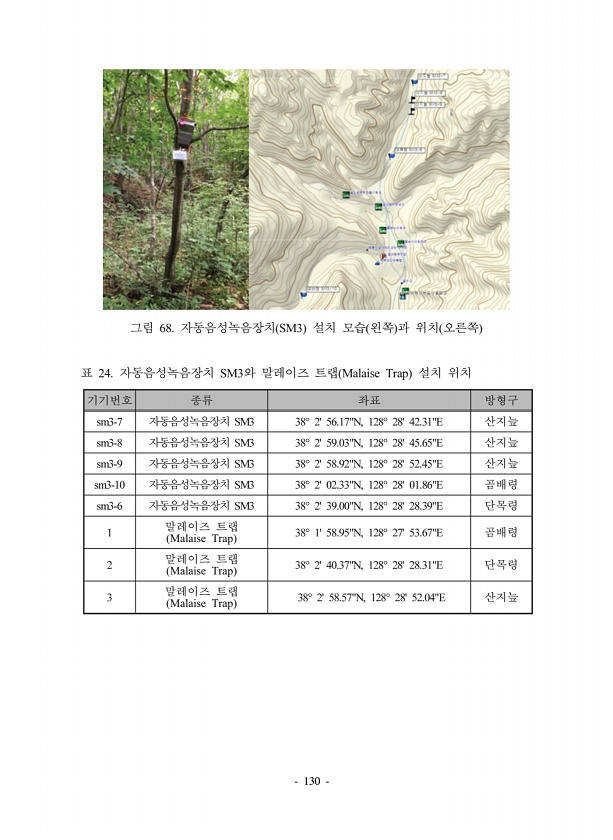 130 68. SM3 24. SM3 Malaise Trap sm3-7 SM3 38° 256.17N, 128° 2842.31E sm3-8 SM3 38° 259.03N, 128° 2845.65E sm3-9 SM3 38° 258.92N, 128° 2852.45E sm3-10 SM3 38° 202.33N, 128° 2801.86E sm3-6 SM3 38° 239.00N, 128° 2828.39E 1 Malaise Trap 38° 158.95N, 128° 2753.67E 2 Malaise Trap 38° 240.37N, 128° 2828.31E 3 Malaise Trap 38° 258.57N, 128° 2852.04E