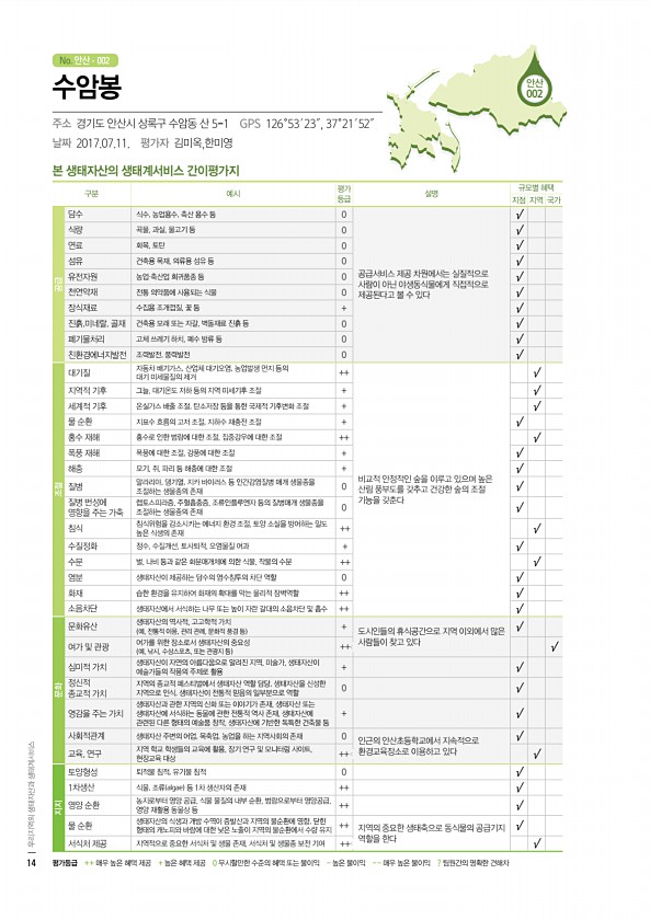 제목 : 우리지역 생태자산과 생태계서비스(안산)