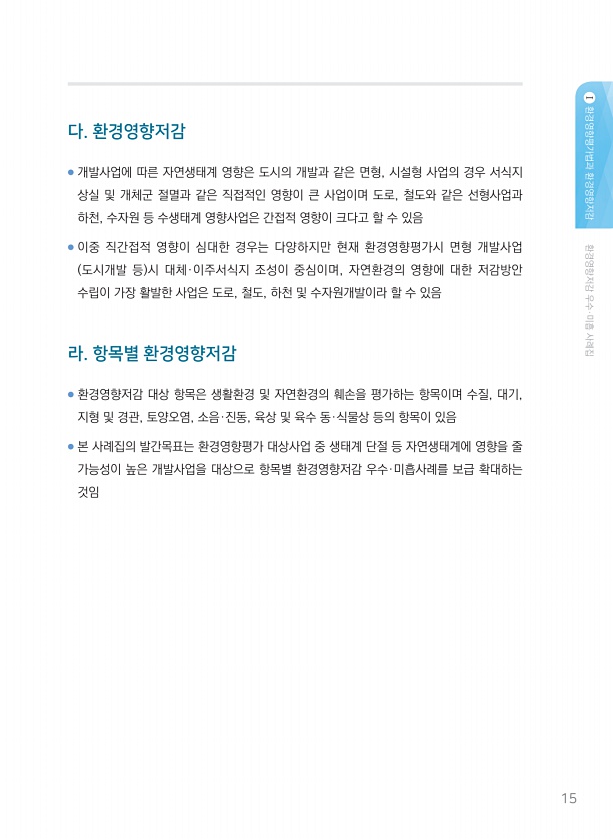 제목 : 환경영향저감 우수미흡 사례집 : 자연환경 민감사업 환경영향 저감사례