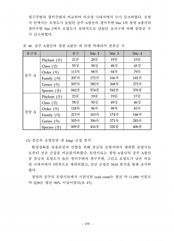 159 A Site 3 A Site 2 Site 2 Site 3 Site 4 A Phylum 21 20 19 15 Class 55 50 48 41 Order 113 98 94 79 Family 207 172 166 141 Genus 507 382 368 273 Species 842 574 542 376 A Phylum 23 19 19 17 Class 58 50 49 46 Order 118 96 99 83 Family 213 163 174 146 Genus 505 306 371 283 Species 809 416 520 406 46. A A 2 fungi A A , 3 , NGS read count 11,000 Q30 96% 47