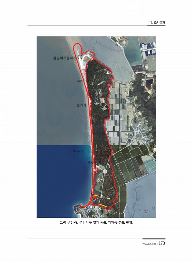 III. 조사결과 www.nie.re.kr ?173 그림 우전-5. 우전사구 일대 좌표 기재종 분포현황.