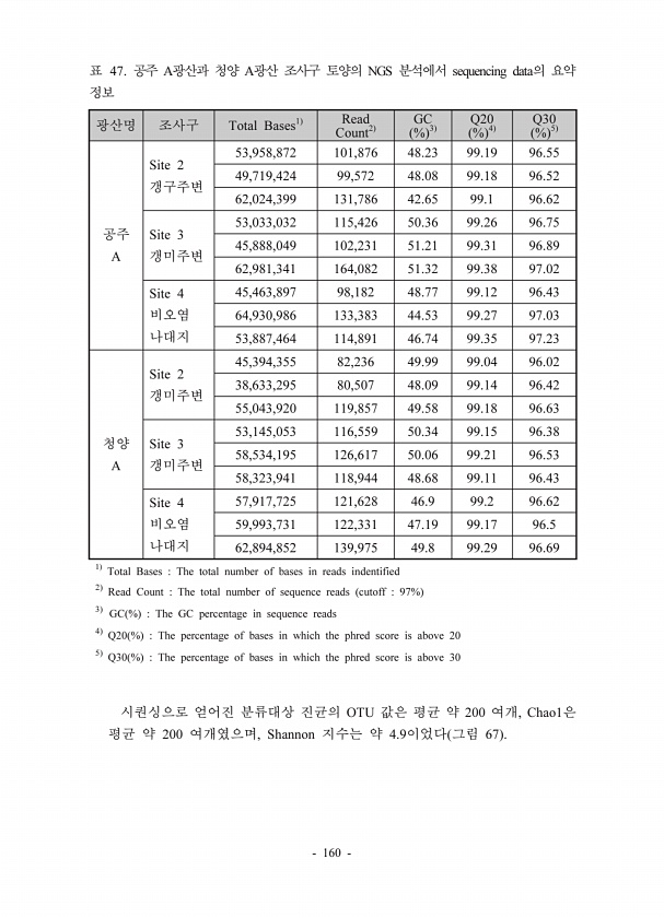 160 Total Bases1 Read Count2 GC % 3 Q20 % 4 Q30 % 5 A Site 2 53,958,872 101,876 48.23 99.19 96.55 49,719,424 99,572 48.08 99.18 96.52 62,024,399 131,786 42.65 99.1 96.62 Site 3 53,033,032 115,426 50.36 99.26 96.75 45,888,049 102,231 51.21 99.31 96.89 62,981,341 164,082 51.32 99.38 97.02 Site 4 45,463,897 98,182 48.77 99.12 96.43 64,930,986 133,383 44.53 99.27 97.03 53,887,464 114,891 46.74 99.35 9...