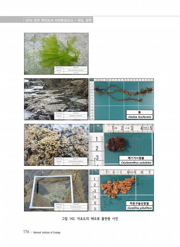 2015 전국 무인도서 자연환경조사 완도 권역 176 ? National Institute of Ecology 그림 142. 지초도의 해조류 출현종사진
