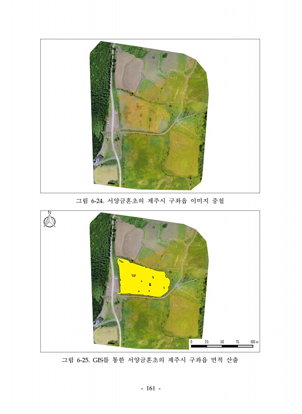 161 그림 6-24. 서양금혼초의 제주시 구좌읍 이미지 중첩 그림 6-25. GIS를 통한 서양금혼초의 제주시 구좌읍 면적산출