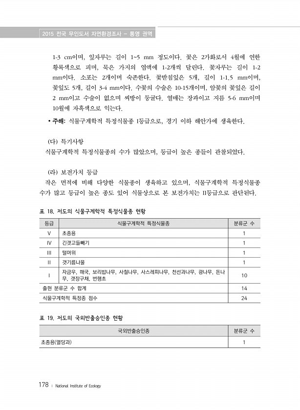 제목 : (2015) 전국 무인도서 자연환경조사 : 통영 권역
