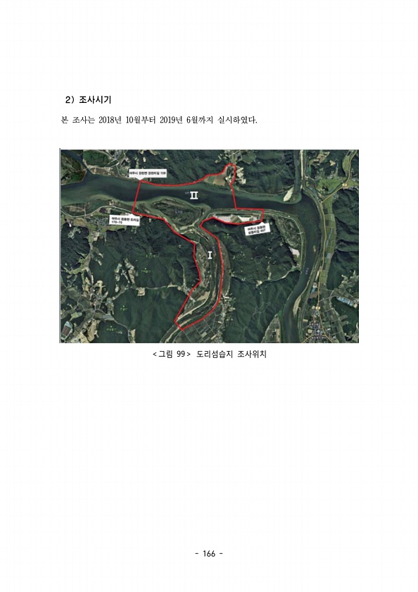 166 본 조사는 년 월부터 년 월까지 실시하였다 2018 10 2019 6 <그림 99> 도리섬습지조사위치