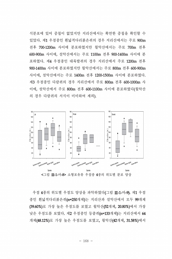 Species Apodemus agrarius Apodemus penisulae Myodes regulus Tamias sibiricus E l e v a t i o n m 0 200 400 600 800 1000 1200 1400 1600 1800 Worak Species Apodemus agrarius Apodemus penisulae Myodes regulus Tamias sibiricus E l e v a t i o n m 0 200 400 600 800 1000 1200 1400 1600 1800 Seorak Species Apodemus agrarius Apodemus penisulae Myodes regulus Tamias sibiricus E l e v a t i o n m 0 200 400 ...