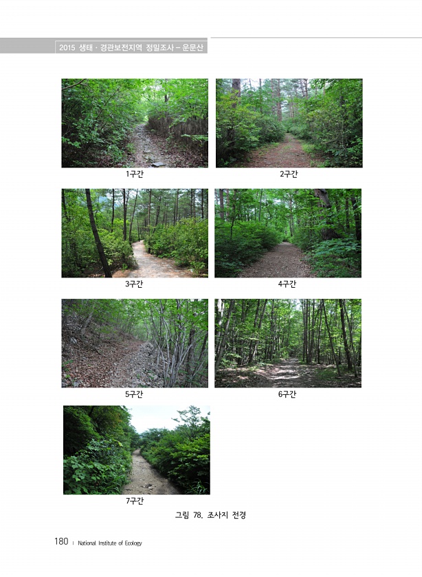 2015 생태·경관보전지역 정밀조사 운문산 180 ? National Institute of Ecology 1구간 2구간 3구간 4구간 5구간 6구간 7구간 그림 78. 조사지전경