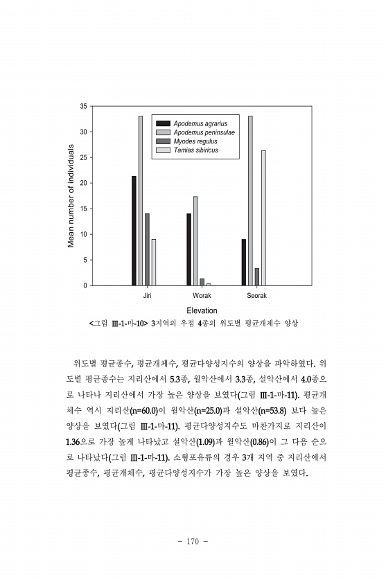 Elevation Jiri Worak Seorak Mean number of individuals 5 0 10 15 20 25 30 35 Apodemus agrarius Apodemus peninsulae Myodes regulus Tamias sibiricus ? ? ? ? ? ? ? ? ? ? ? ? ? ? ? ? ? ? ? ? ?