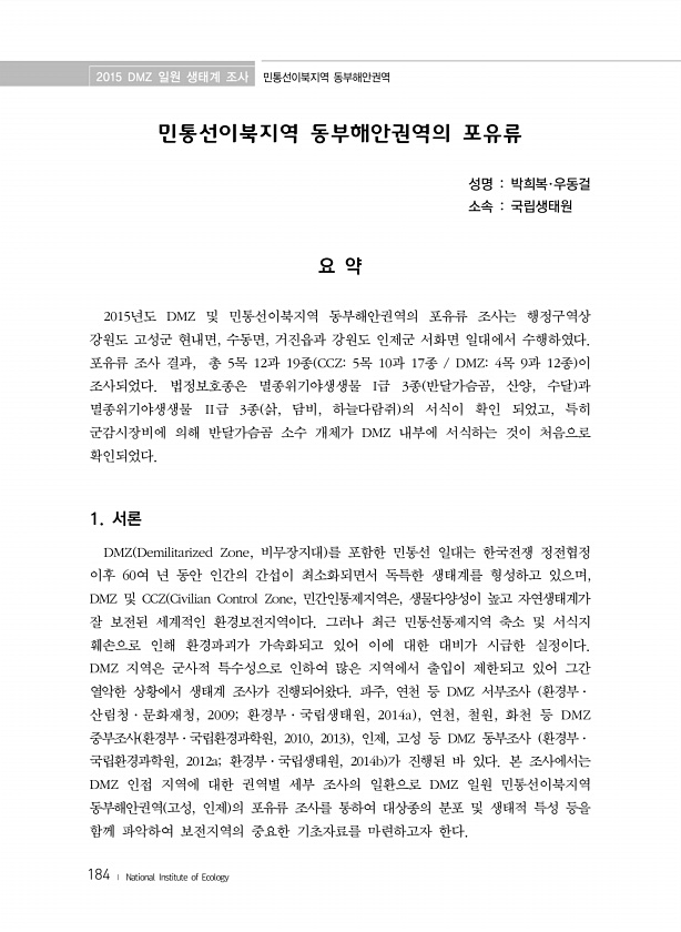 제목 : (2015) DMZ 일원 생태계 조사 :민통선이북 동부해안권역