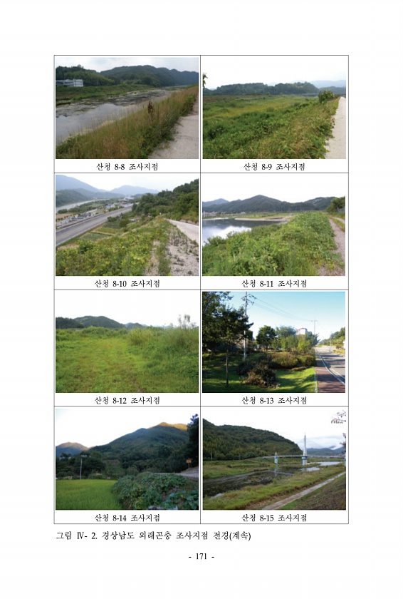 산청 8-8 조사지점 산청 8-9 조사지점 산청 8-10 조사지점 산청 8-11 조사지점 산청 8-12 조사지점 산청 8-13 조사지점 산청 8-14 조사지점 산청 8-15 조사지점 그림 Ⅳ- 2. 경상남도 외래곤충 조사지점 전경 계속 171