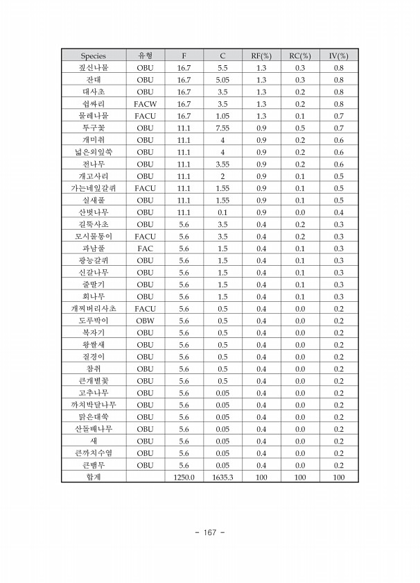 Ⅱ. 조사결과 www.nie.re.kr ? 187 그림 81. 28-19지점 삵 멸종위기야생생물 Ⅱ급 그림 82. 28-19지점 오소리 빙애코스 종명 28-19 평균 1 고슴도치 0.00 2 삵 3.20 3.20 3 너구리 6.95 6.95 4 담비 0.00 5 족제비 0.00 6 오소리 23.52 23.52 7 멧돼지 21.39 21.39 8 노루 0.00 9 고라니 20.85 20.85 10 꽃사슴 0.00 11 멧토끼 0.00 12 청설모 0.00 13 다람쥐 3.53 3.53 합계 79.44 79.44 표 59. 빙애코스 무인센서카메라 종별 출현빈도 ※ 출현빈도 = 총 촬영 횟수 전체 모니터링 일수 × 100일 ※ 고양이와 개 등의 생태계 교란종과 사진으로 종 동정이 어려운 소형 설치목, 식충목 등은...