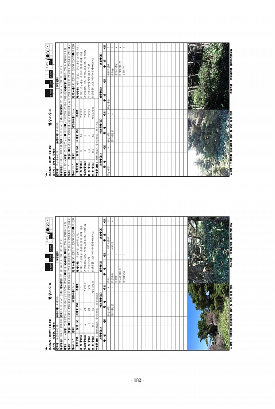 No 조사일자 2017년 9월 8일 조사자 김명준, 강혜진 현장조사표 군락명구상나무군락 조사지역윗세오름 도엽번호식생상관아고산 침엽수림 면적5 × 5 ㎡ 위·경도 GPS 33°21′ 53.3″ N, 126°30′ 51.2″ E 해발1,611 m 지형□산정□능선□사면 □상□중□하 □계곡■평지 미세지형■평면 □돌출 □함몰□요철 방위° 토양■갈색삼림토 □적황색삼림토 □암적색삼림토 □회갈색삼림토 □침식토 □미숙토 □암쇄토 경사5 ° 경도낙엽부식층5 cm 암석노출 % □≥51 □ 50 □ 25■ 5 □0 층위구분 높이 m 식피율 % 우점종 특기사항구상나무 고사목 2개, 이끼는 구상나무 수간과 암석 위에 자람 조릿대피도95%, 암석노출율5%, 이끼5% 치수개수6개 토양샘플2017-한라-윗세-0908-02 교 목 층 T1...