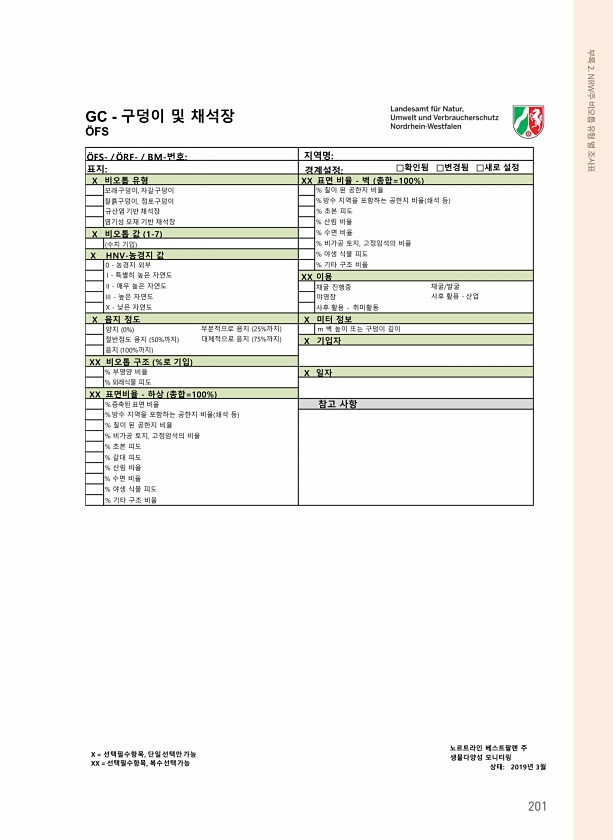 부록 2. NRW주 비오톱 유형 별 조사표201