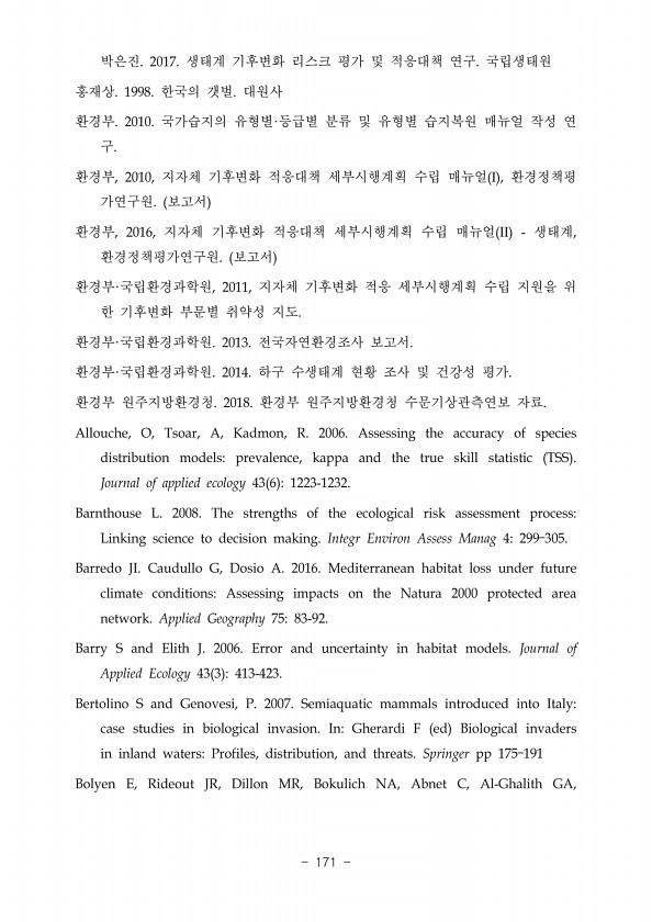 2017. ? 1998. 2010. · ? , 2010, ? I , , 2016, ? II , · , 2011, ? ? · 2013. · 2014. 2018. ? Allouche, O, Tsoar, A, Kadmon, R. 2006. Assessing the accuracy of species distribution modelsprevalence, kappa and the true skill statistic TSS Journal of applied ecology 43 6 1223-1232. Barnthouse L. 2008. The strengths of the ecological risk assessment processLinking science to decision making. Integr Envi...
