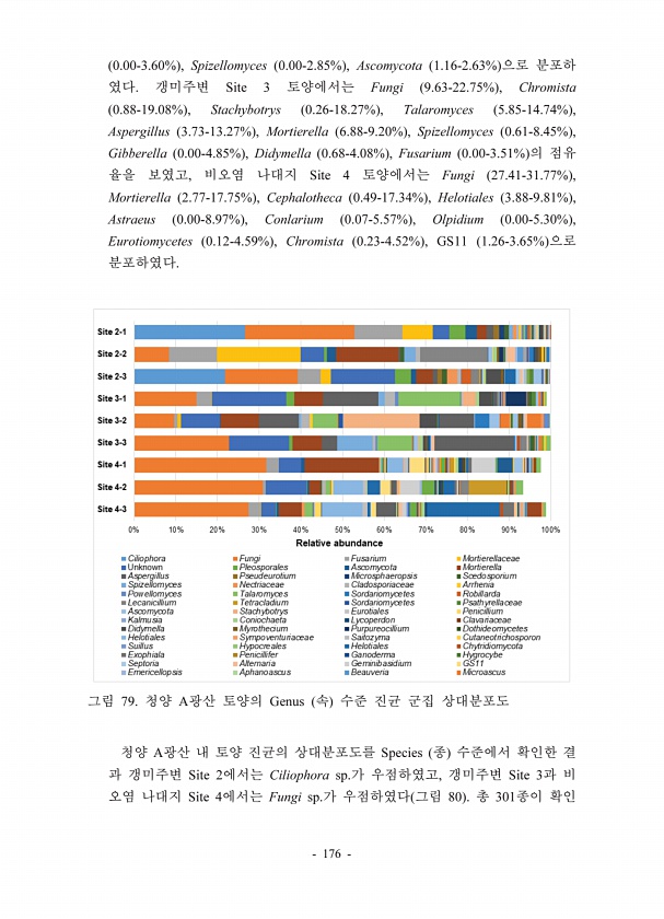 176 0.00-3.60% , Spizellomyces 0.00-2.85% , Ascomycota 1.16-2.63% Site 3 Fungi 9.63-22.75% , Chromista 0.88-19.08% , Stachybotrys 0.26-18.27% , Talaromyces 5.85-14.74% , Aspergillus 3.73-13.27% , Mortierella 6.88-9.20% , Spizellomyces 0.61-8.45% , Gibberella 0.00-4.85% , Didymella 0.68-4.08% , Fusarium 0.00-3.51% , Site 4 Fungi 27.41-31.77% , Mortierella 2.77-17.75% , Cephalotheca 0.49-17.34% , He...