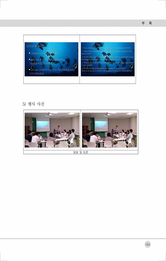 부 록 183 5 행사 사진 발표 및토론