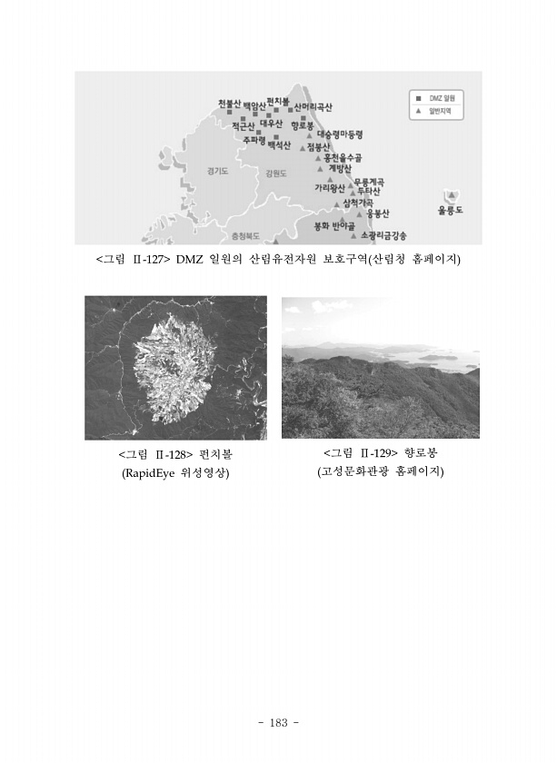 183 그림 일원의 산림유전자원 보호구역 산림청 홈페이지 그림 펀치볼 위성영상 그림 향로봉 고성문화관광홈페이지