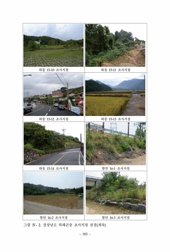 하동 15-10 조사지점 하동 15-11 조사지점 하동 15-12 조사지점 하동 15-13 조사지점 하동 15-14 조사지점 함안 16-1 조사지점 함안 16-2 조사지점 함안 16-3 조사지점 그림 Ⅳ- 2. 경상남도 외래곤충 조사지점 전경 계속 183