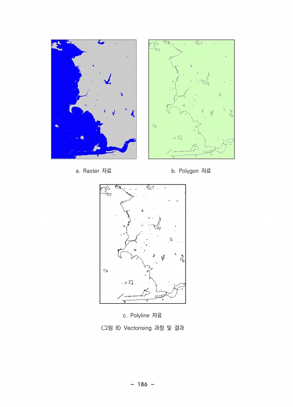 186 a. Raster 자료 b. Polygon 자료 c. Polyline 자료 그림 8 Vectorising 과정 및결과