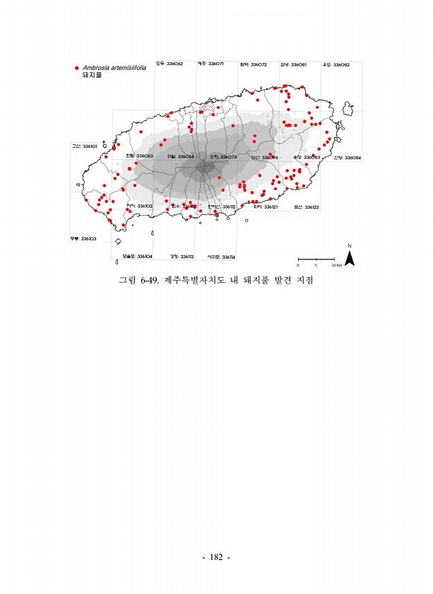 182 그림 6-49. 제주특별자치도 내 돼지풀 발견지점