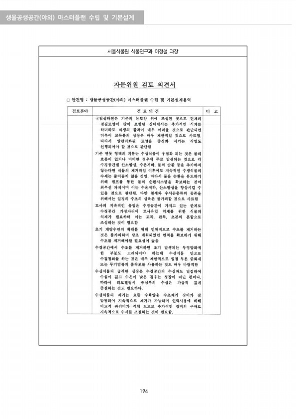 생물공생공간 야외 마스터플랜 수립 및 기본설계 194 서울식물원 식물연구과 이정철과장