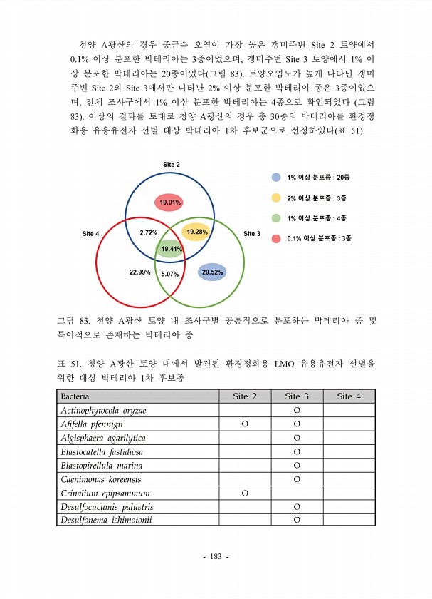 183 A Site 2 0.1% 3 , Site 3 1% 20 83 Site 2 Site 3 2% 3 , 1% 4 83 A 30 1 51 83. A Bacteria Site 2 Site 3 Site 4 Actinophytocola oryzae O Afifella pfennigii O O Algisphaera agarilytica O Blastocatella fastidiosa O Blastopirellula marina O Caenimonas koreensis O Crinalium epipsammum O Desulfocucumis palustris O Desulfonema ishimotonii O 51. A LMO 1