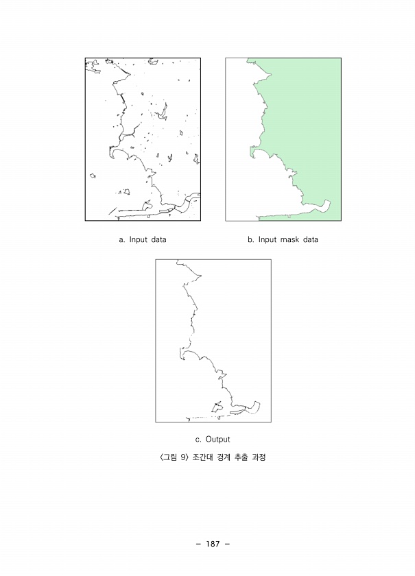 187 a. Input data b. Input mask data c. Output 그림 9 조간대 경계 추출과정