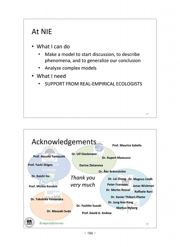 Icelab EEP Theore1cal ecology Inventory center Acknowledgements Kempestiftelserna Prof. Atsushi Yamauchi Dr. Ulf Dieckmann Dr. Rupert Mazzucco Dr. ?ke Br?nnstr?m Prof. Maurice Sabelis Dr. Takehiko Yamanaka Prof. Yachi Shigeo Darina Zlatanova Prof. Michio Kondoh Dr. Koichi Ito Dr. Masaaki Sudo Dr. Yoshito Suzuki Dr. Lai Zhang Jonas Wickman Dr. MarWn Rosval Markus Nyberg Prof. David A. Andow Thank y...