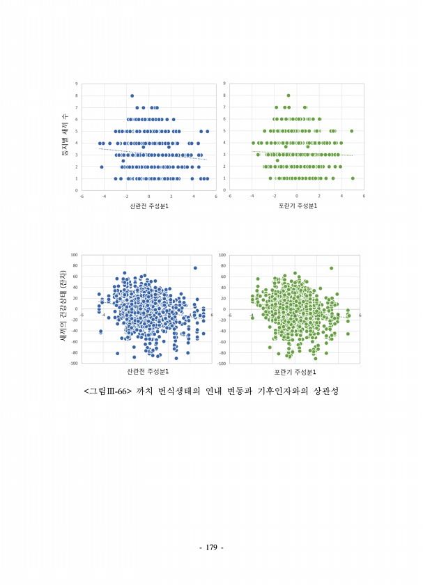179 그림Ⅲ-66 까치 번식생태의 연내 변동과 기후인자와의상관성