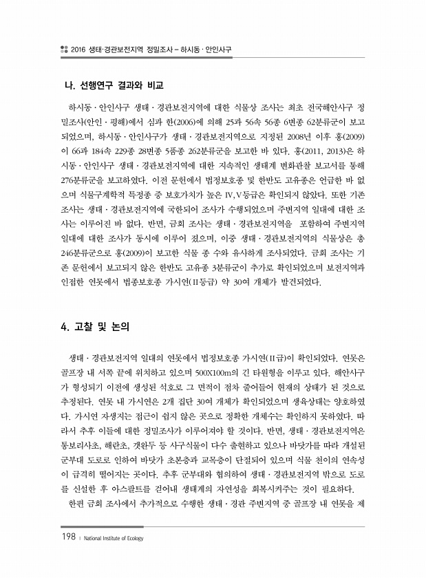 제목 : (2016) 생태·경관보전지역 정밀조사 : 하시동·안인사구