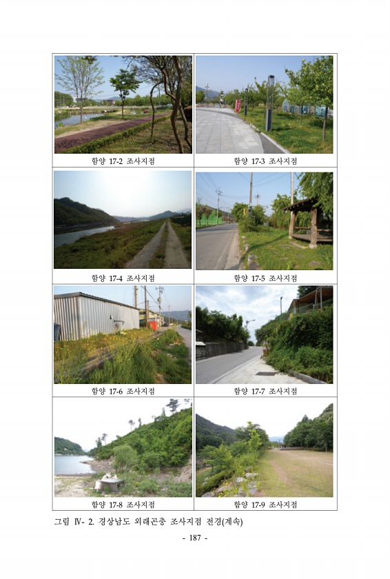함양 17-2 조사지점 함양 17-3 조사지점 함양 17-4 조사지점 함양 17-5 조사지점 함양 17-6 조사지점 함양 17-7 조사지점 함양 17-8 조사지점 함양 17-9 조사지점 그림 Ⅳ- 2. 경상남도 외래곤충 조사지점 전경 계속 187