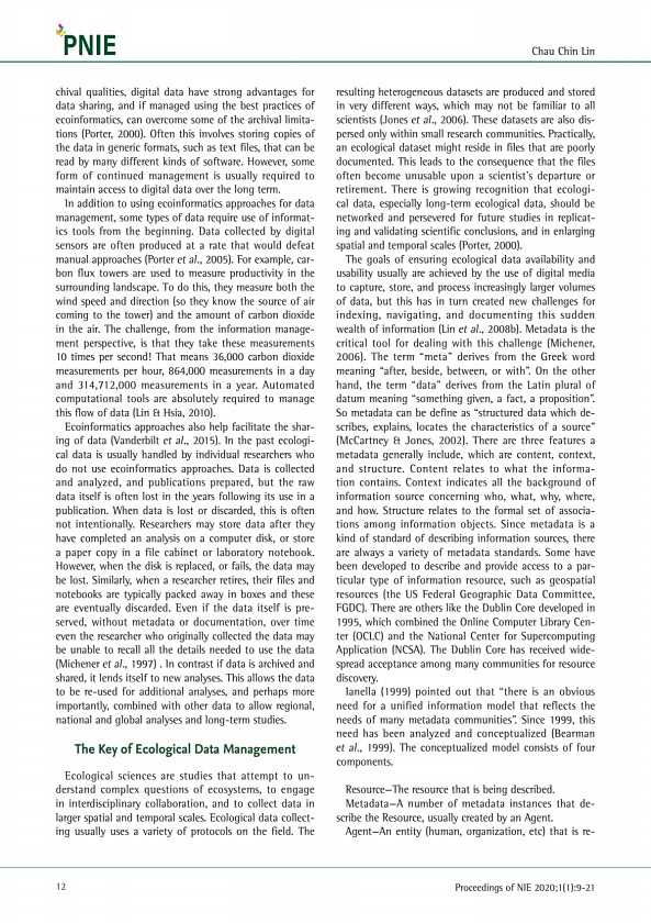 Chau Chin Lin 12 Proceedings of NIE 2020;1 1 9-21 chival qualities, digital data have strong advantages for data sharing, and if managed using the best practices of ecoinformatics, can overcome some of the archival limitations Porter, 2000 Often this involves storing copies of the data in generic formats, such as text files, that can be read by many different kinds of software. However, some form ...