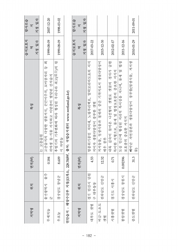 II. 조사결과 www.nie.re.kr ?203 특기사항 없음. 해안무척추동물 분야의 보전가치 등급 판정을 위해 다음과 같은 기준을 사용하였 다. 총점 14 점에 해당되어 II 등급으로 판단된다 표 11-4 Order Mesogastropoda 중복족목 Family Littorinidae 총알고둥과 5. Nodilittorina radiata 좁쌀무늬총알고둥 Order Neogastropoda 신복족목 Family Muricidae 뿔소라과 6. Thais clavigera 대수리 Class Bivalvia 이매패강 Order Mytiloida 홍합목 Family Mytilidae 홍합과 7. Septifer virgatus 굵은줄격판담치 Order Pterioida 익각목 Family Ostreidae ...