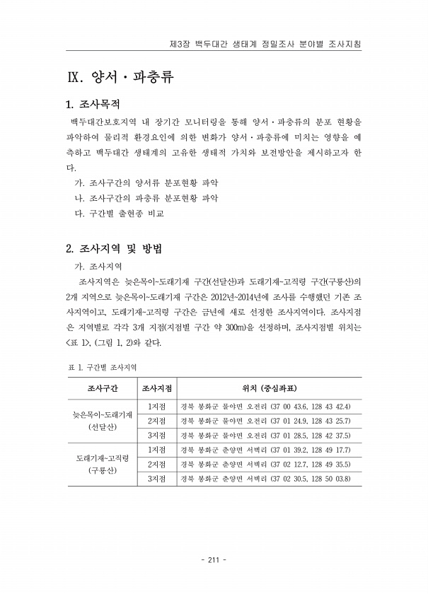 제목 : DMZ 일원 생태계 조사 : 민통선이북지역 중부산악권역