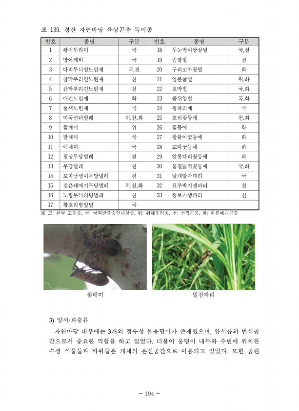 2017 백두대간보호지역 생태계 조사 묘적재 화방재 204 ? National Institute of Ecology 목명 과명 국명 학명 2017 2008 비고 딱정벌레목 딱정벌레과 민줄딱정벌레 Aulonocarabus Adelocarabus semiopacus 3 고유종,국외반출 승인대상 딱정벌레목 딱정벌레과 왕딱정벌레 Isiocarabus fiduciarius subsp. kirinicus 2 국외반출 승인대상 딱정벌레목 딱정벌레과 진홍단딱정벌레 Coptolabrus smaragdinus subsp. branickii 1 딱정벌레목 딱정벌레과 청진민줄딱정벌레 Aulonocarabus Adelocarabus seishinensis subsp. seishinensis 39 딱정벌레목 딱정벌레과...