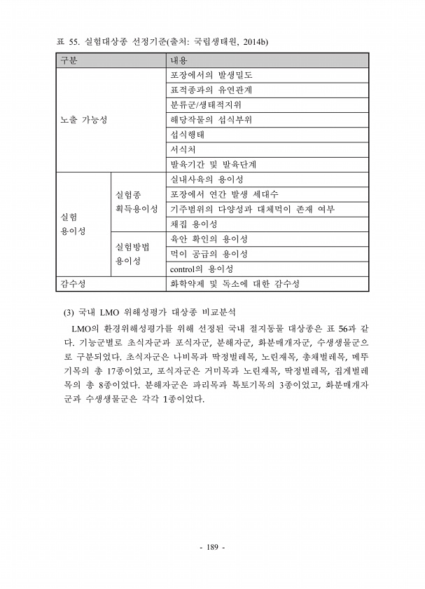 제목 : (2019년) 환경부 소관 LMO 위해성평가 체계 구축 및 평가기관 운영