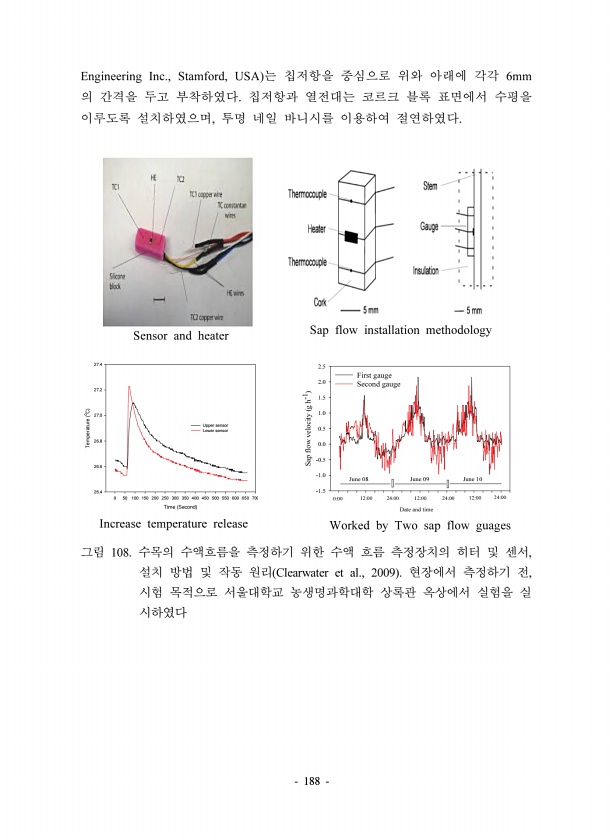 188 Engineering Inc., Stamford, USA 6mm , Date and time Sap flow velocity g h-1 -1.5 -1.0 -0.5 0.0 0.5 1.0 1.5 2.0 2.5 First gauge Second gauge 000 1200 2400 1200 2400 1200 2400 June 08 June 09 June 10 Time Second 0 50 100 150 200 250 300 350 400 450 500 550 600 650 700 Temperature 0C 26.4 26.6 26.8 27.0 27.2 27.4 Upper sensor Lower sensor Sensor and heater Sap flow installation methodology Increa...