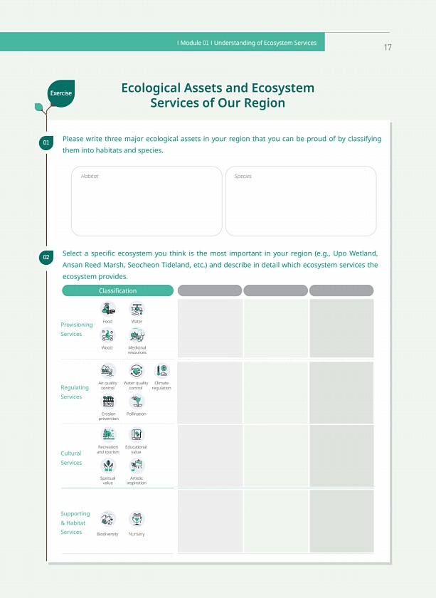 76 곤충 26종 큰자색호랑꽃무지 Ⅱ급 큰홍띠점박이푸른부전나비 Ⅱ급 생물정보 바로가기 생물정보바로가기ical Assets and Ecosystem Services of Our Region Select a specifc ecosystem you think is the most important in your region e.g., Upo Wetland, Ansan Reed Marsh, Seocheon Tideland, etc. and describe in detail which ecosystem services the ecosystem provides. Please write three major ecological assets in your region that you can be proud of by cl...