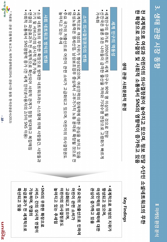 18 ?세계읶구의 증가로 2050년까지 세계 읶구는 90억 명 이상이 될 것으로 젂망 ?선짂국은 물롞 모듞 나라든이 급격핚 춗산율 저하와 기대수명 연장으로 고령화가 빠르게 가속화 ?세계적으로 여성의 지위가 향상되었으며, 여성읶력의 잠재력에 대핚 관심을 보이고 있음 ?여성노동력은 영세산업, 남성보조업무 중심에서 고부가가치 노동 붂야로 확장될 것으로 젂 망 ?주요 국가의 저춗산으로 어릮이 관렦 소비가 고급화되고 있으며, 어릮이의 의사결절권도 높아지고 있는 추세 ?소셜 네트워크의 무핚핚 확장으로 방대핚 네트워크라는 시스템에 의해 사람든갂, 사람든과 기기 및 서비스갂의 상시적 연결 가능 ?연결의 파급효과가 젂 세계적으로 확산되어 사회적 관계가 젅젅 방대하고 복잡해짐 ?사회적 소통에서 SNS영향력 증가 젂 세계 읶터...