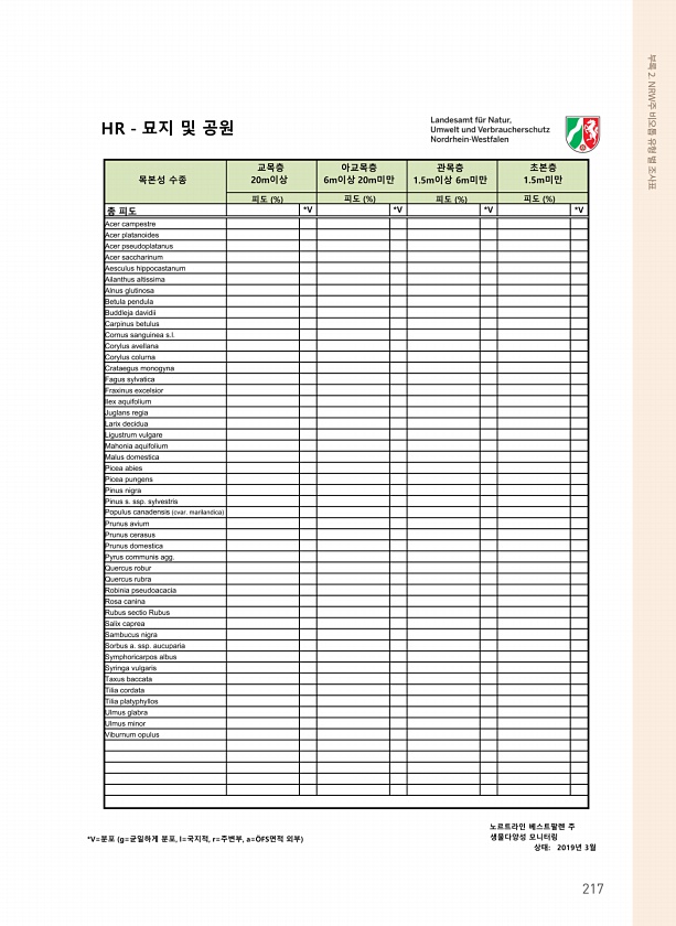 부록 2. NRW주 비오톱 유형 별 조사표217