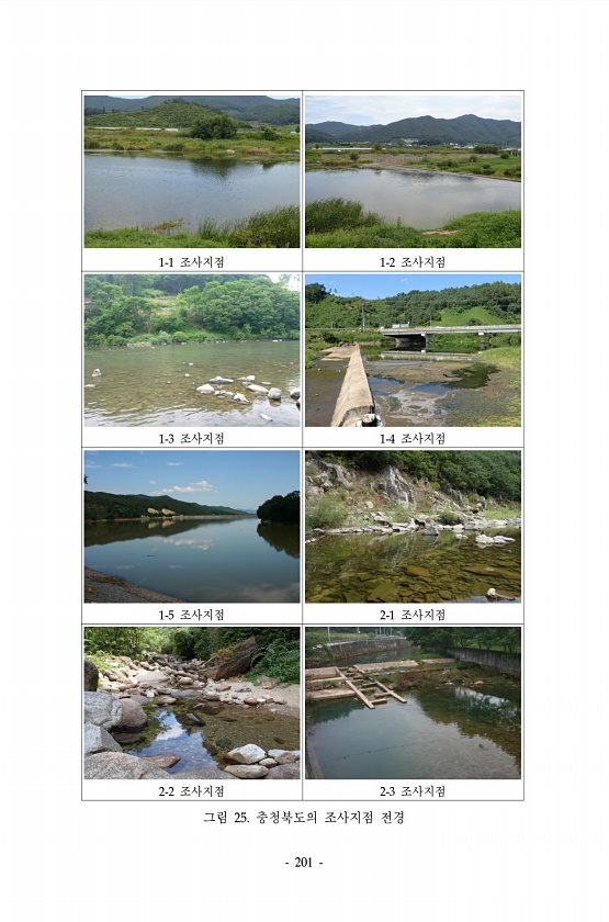 201 1-1 조사지점 1-2 조사지점 1-3 조사지점 1-4 조사지점 1-5 조사지점 2-1 조사지점 2-2 조사지점 2-3 조사지점 그림 25. 충청북도의 조사지점전경