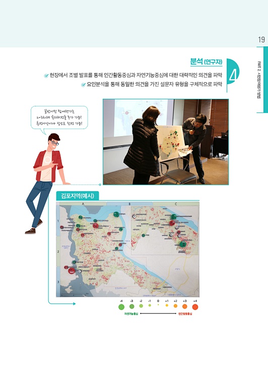 PART 2. 시민참여평가 방법 19 분석 연구자 현장에서 조별 발표를 통해 인간활동중심과 자연기능중심에 대한 대략적인 의견을 파악 요인분석을 통해 동일한 의견을 가진 설문자 유형을 구체적으로 파악 4 -4 -3 -2 -1 0 +1 +2 +3 +4 자연기능중심 인간활동중심 일반시민 참여평가는 2-3차례 숙의과정을 추가 가능! 특정사안이나 장소로 한정 가능! 김포지역 예시