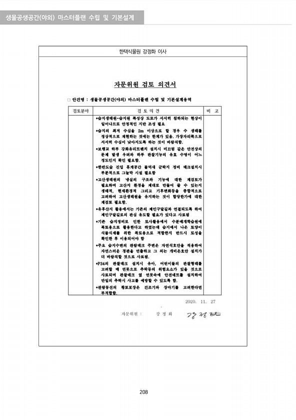 생물공생공간 야외 마스터플랜 수립 및 기본설계 208 한택식물원 강정화이사