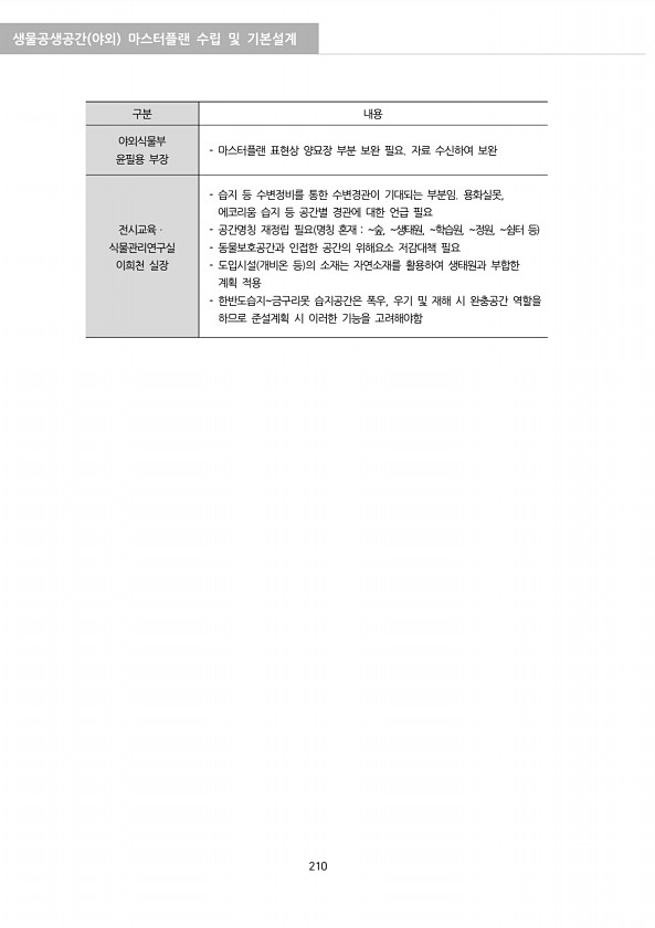 제목 : 생물공생공간(야외) 마스터플랜 수립 및 기본설계 최종보고서