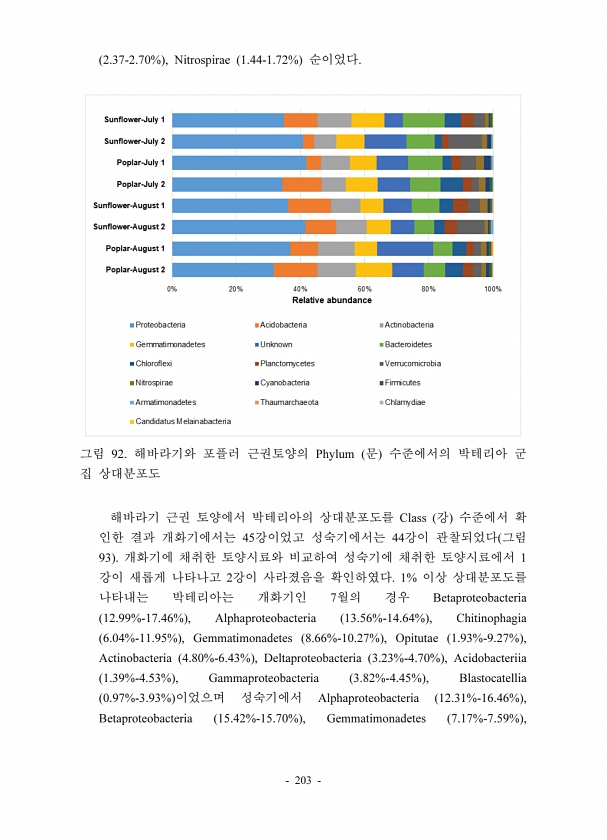 203 2.37-2.70% , Nitrospirae 1.44-1.72% 92. Phylum Class 45 44 93 1 2 1% 7 Betaproteobacteria 12.99%-17.46% , Alphaproteobacteria 13.56%-14.64% , Chitinophagia 6.04%-11.95% , Gemmatimonadetes 8.66%-10.27% , Opitutae 1.93%-9.27% , Actinobacteria 4.80%-6.43% , Deltaproteobacteria 3.23%-4.70% , Acidobacteriia 1.39%-4.53% , Gammaproteobacteria 3.82%-4.45% , Blastocatellia 0.97%-3.93% Alphaproteobacter...